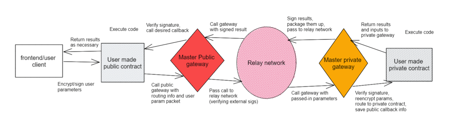 These gateways are relatively simple and generic, primarily consisting of two capabilities. First, gateways can handle signature operations. For gateways on public blockchains, that means verification; for those on privacy-preserving blockchains, that means verification as well as signing. Second, gateways handle serdes operations: converting contract inputs into correctly formatted packets and vice versa.