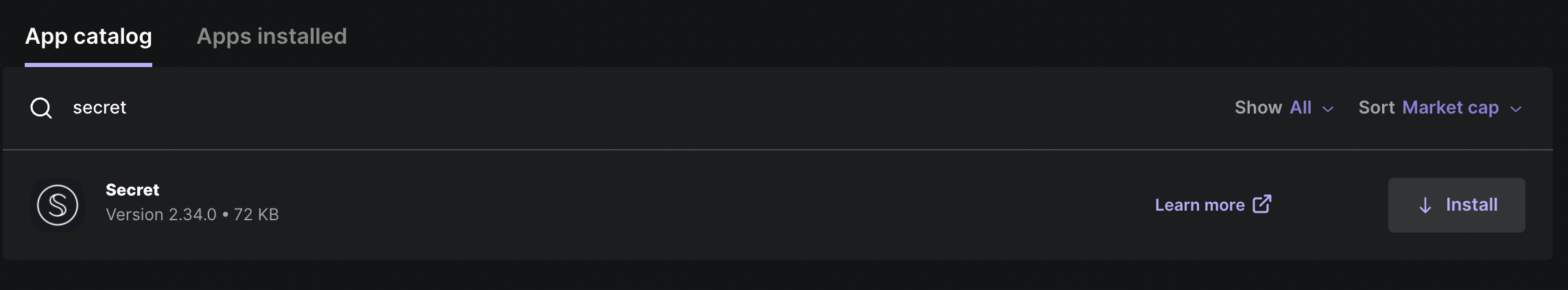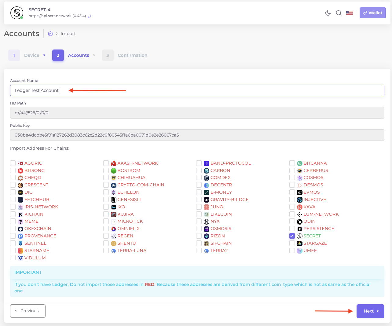 Note : The Secret ledger app may not always be available in search. Try turning on "Experimental". Otherwise using the "Cosmos" app is considered stable.