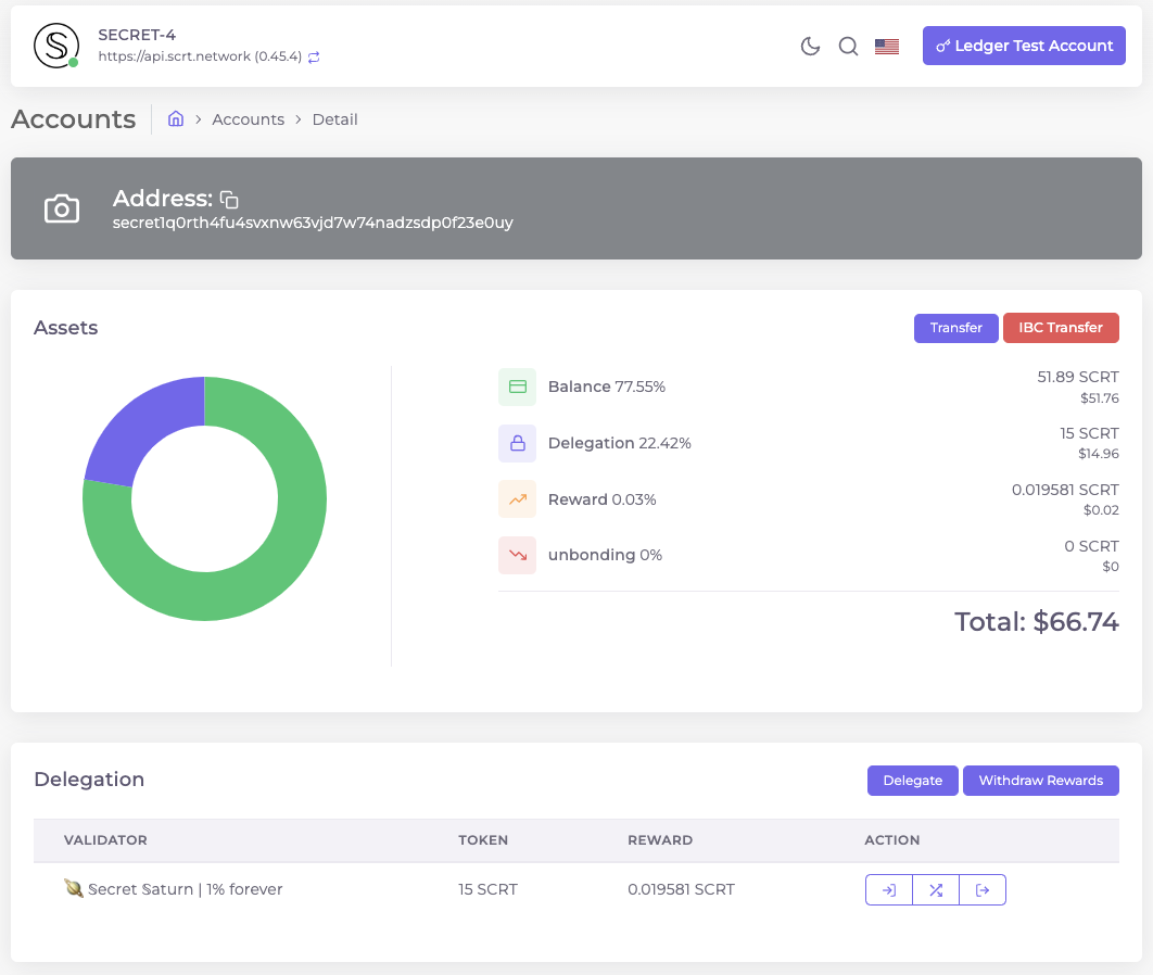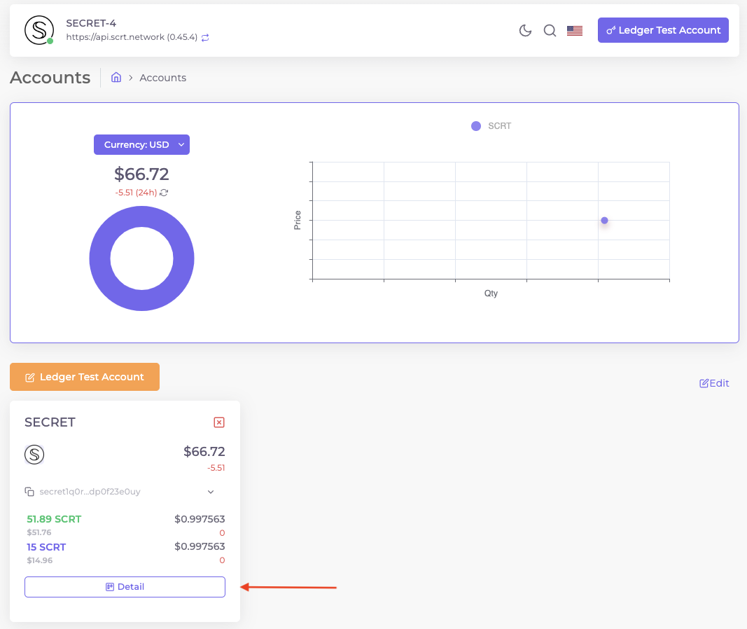 Copy the displayed account address in the Ping.pub wallet to receive SCRT. Please make sure that you verified your receiving address on the Ledger device to prevent loss of funds.