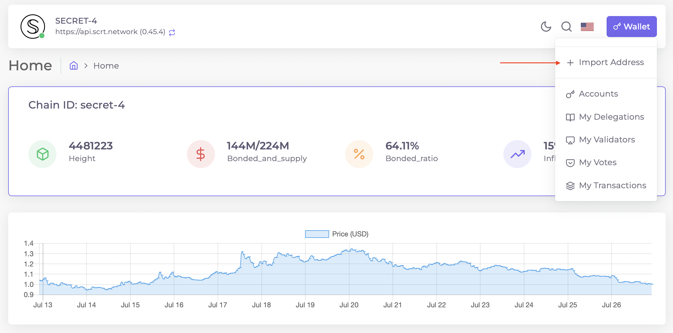 1. Open the tab in the right top corner and click "Import Address."