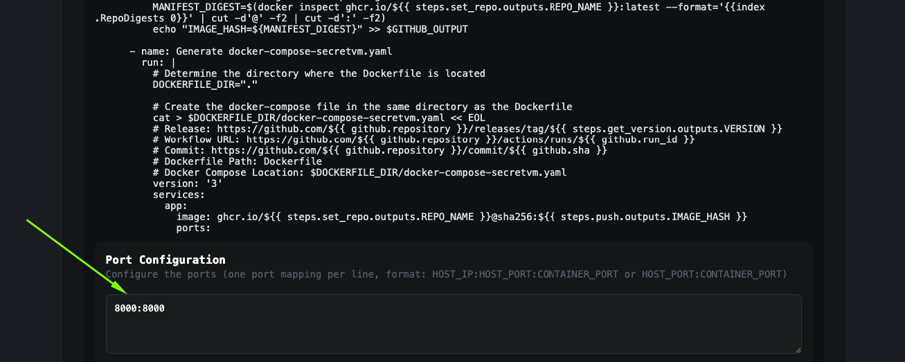 **IMPORTANT: make sure to configure the ports correctly so that the docker-compose-secretvm.yaml file is generated correctly**