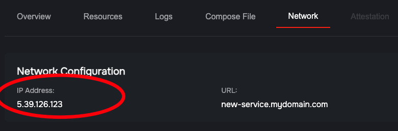 Go to the Network tab to find the IP address that was assigned to the new machine, and then configure your DNS to point the chosen FQDN to that IP.